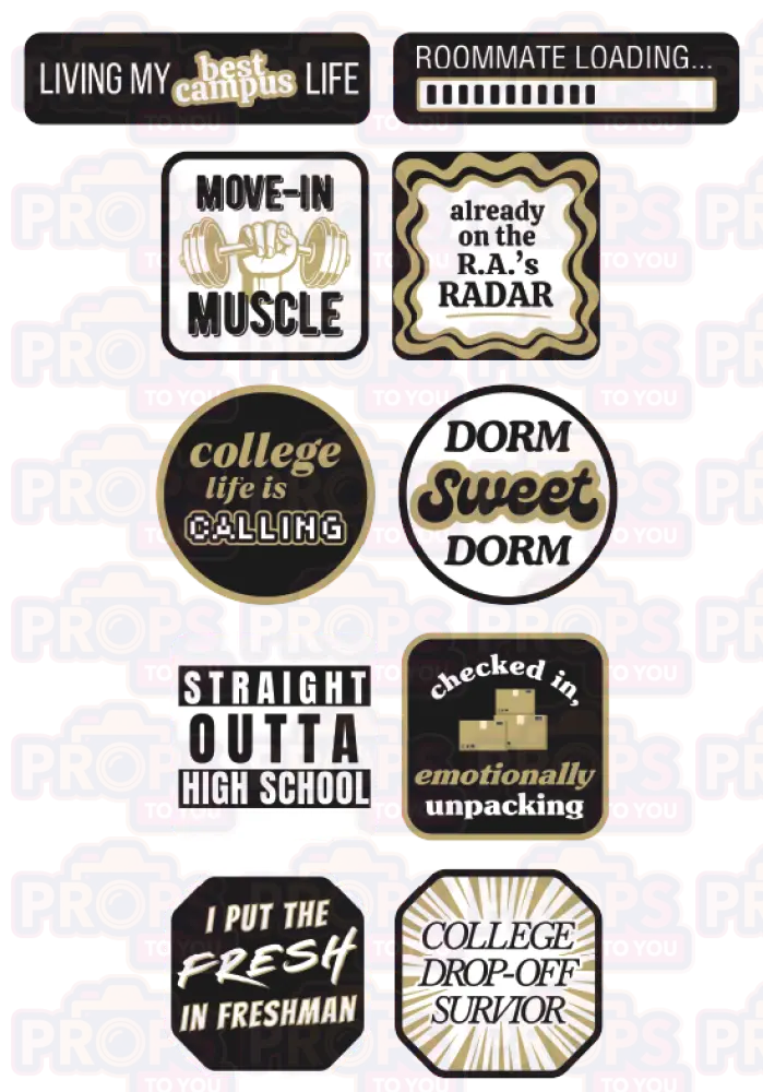 BUNDLE: College Move In Day - 5 Double Sided Props!New keys, new chapter. This College Move-In Day bundle celebrates dorm drop-offs, awkward goodbyes, and the start of something big—with humor, heart, and a little freshman-year attitude.