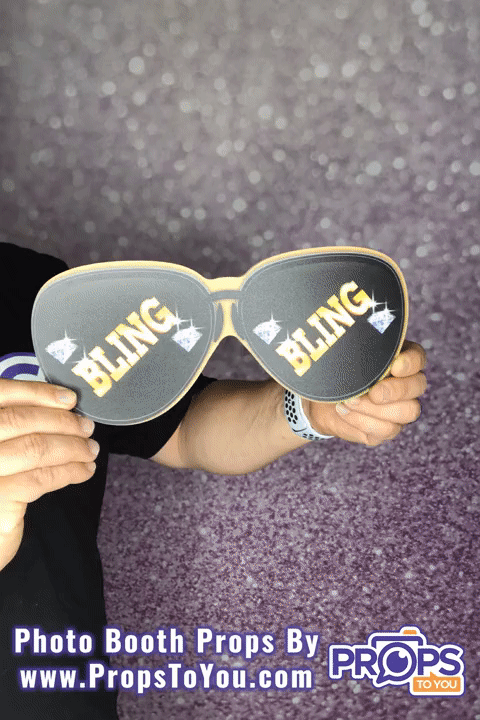 Side two of this photo booth prop features the message "BLING BLING" and diamonds on a pair of sunglasses.