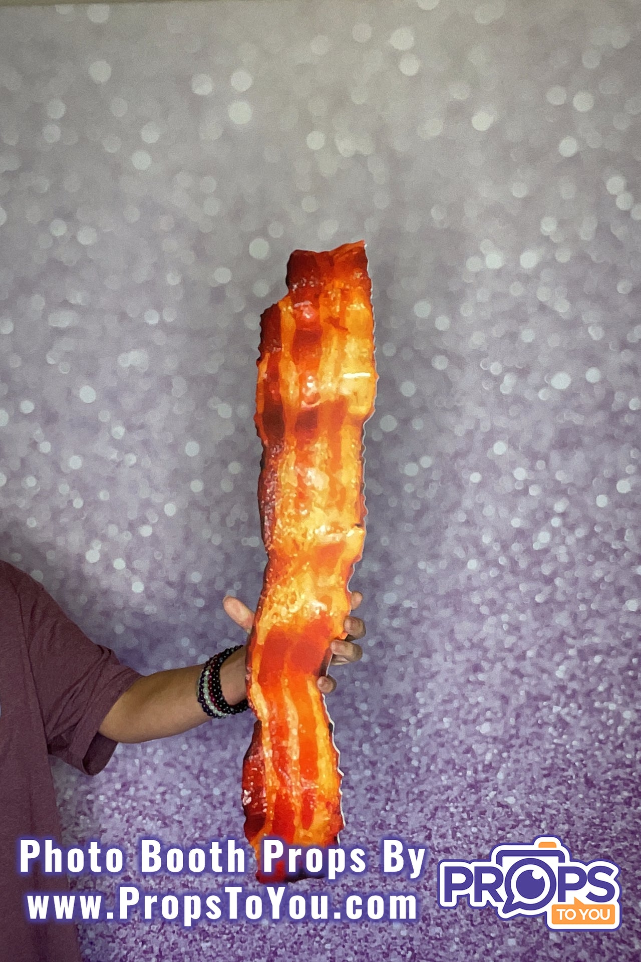 This deliciously BIG photo booth prop is a crisp strip of bacon. Call this one a double order, as both sides are perfectly done.