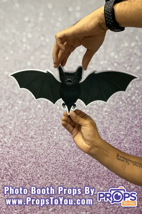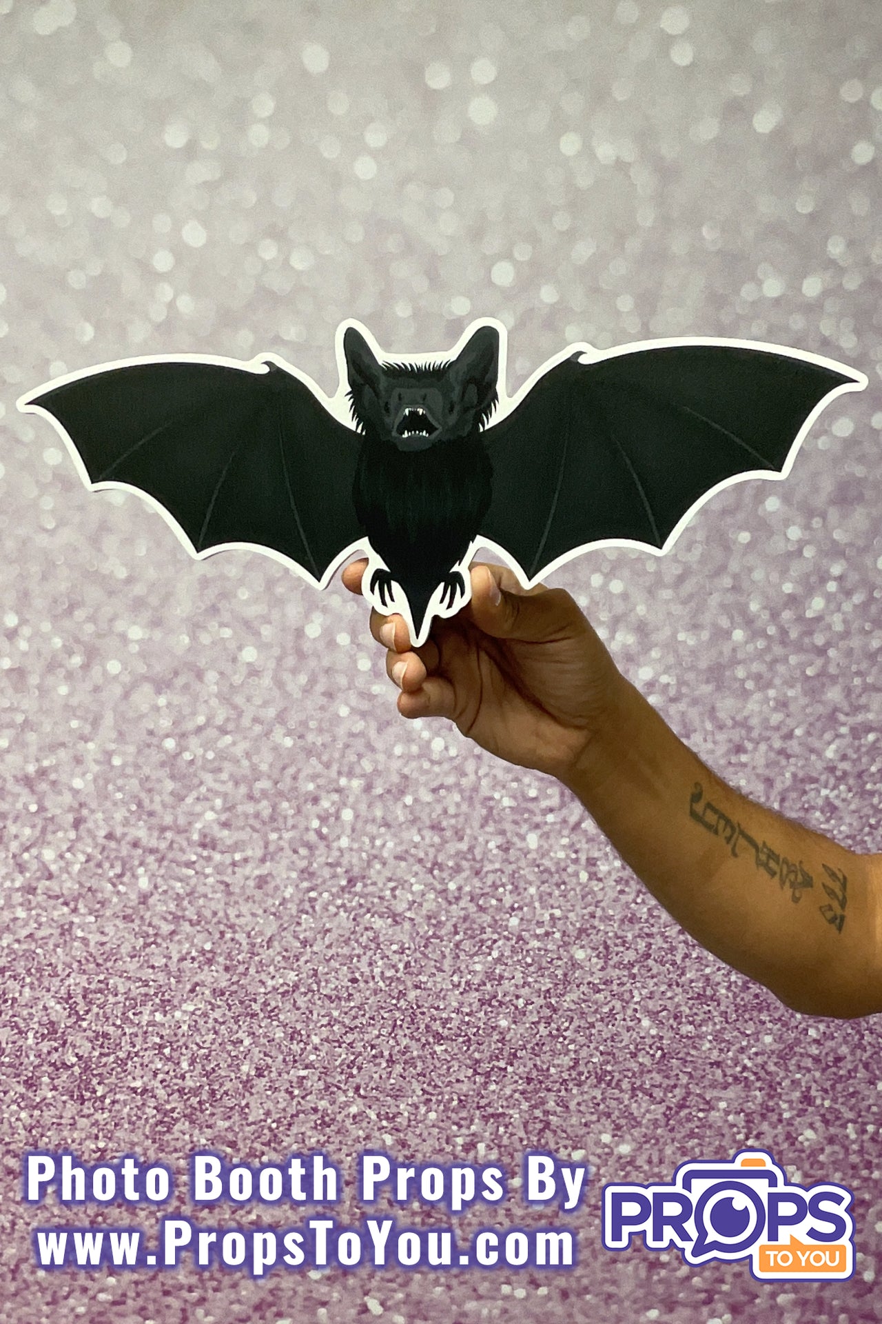 Side two of this photo booth prop features a purple/black bat with its wings spread.