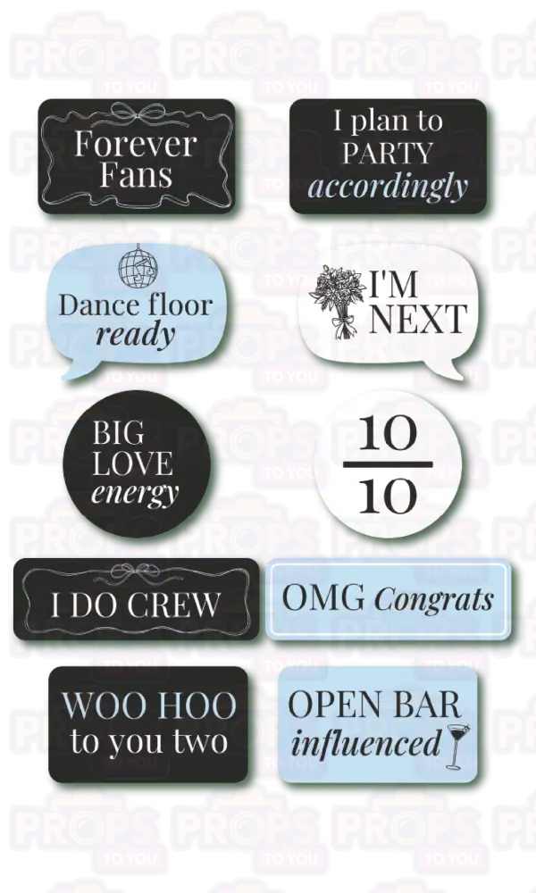 Celebrate love in style with our Wedding Prop Bundle — thoughtfully designed to add charm, personality, and picture-perfect moments to your big day. From heartfelt phrases to playful captions, this set brings guests together and keeps the smiles (and cameras) clicking. Perfect for receptions, showers, rehearsal dinners, or engagement parties — because every love story deserves a little extra sparkle.