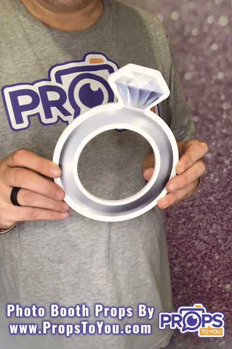 Side one of this photo booth prop features the most iconic silver solitaire diamond engagement ring.