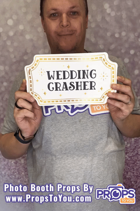 Side two of this photo booth prop features the message "Wedding Crasher" in the theme colors.